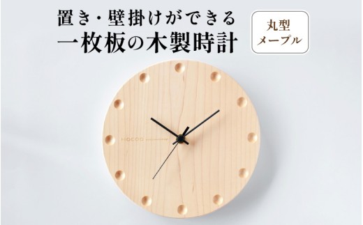 NEW 【Hacoa】置き・壁掛けができる一枚板の木製時計 (丸型メープル…