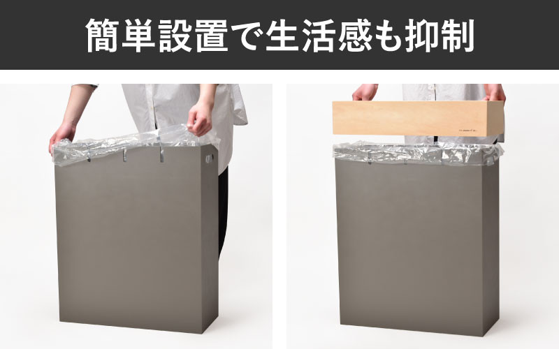 カバーを被せるだけで袋を隠せて、ゴミ箱特有の生活感を消します。