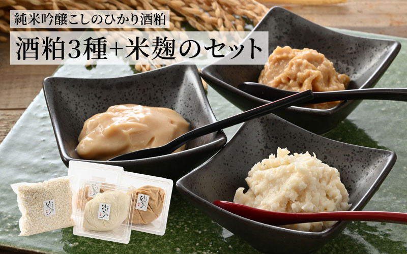 やわらか・ペースト・とろとろ!3種の熟成具合をお楽しみください!~胚芽米麹付き~ 『純米吟醸こしのひかり酒粕』3種+米麹のセット / 純米吟醸酒 日本酒 コシヒカリ 米 ピロール農法 酒粕 米麹 胚芽米麹 酒レシピ ピロール米