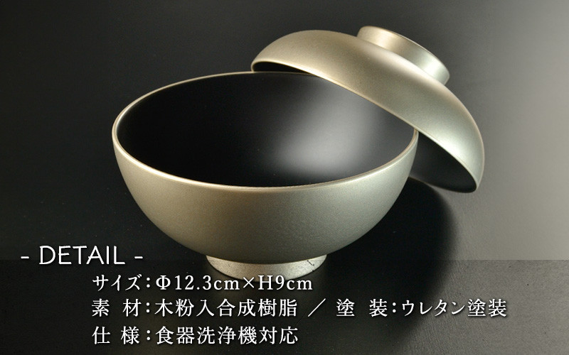 和食器の代表でもあるお椀を銀色にする事でモダンなイメージで仕上がっており、和食に限らず、洋食やイタリアンの料理にもマッチします。