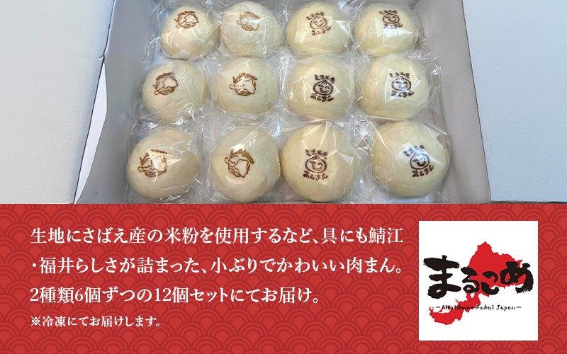 さばえ米を使った新ご当地グルメ!焼印入りのかわいい肉まんの詰合せです。 福井産食材で作った米粉入り肉まん「ぜんぶふくいまん」12個セット[B-13901] / 肉まん 塩こうじ こしあん にくまん ポーク 羽二重餅 米粉 福井県鯖江市