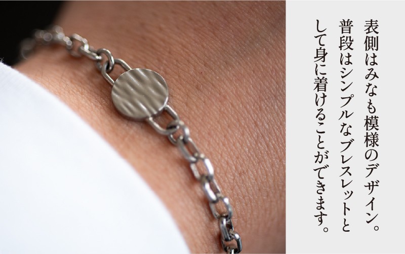 表側はみなも模様デザイン。普段はシンプルなブレスレットとして身に着けることができます。