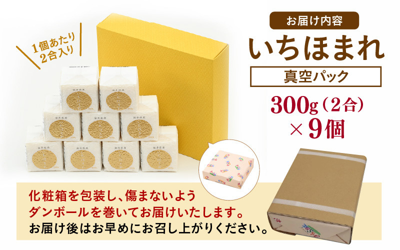 【令和7年産】いちほまれ 真空パック 精米 300g×9個 計2.7kg《…