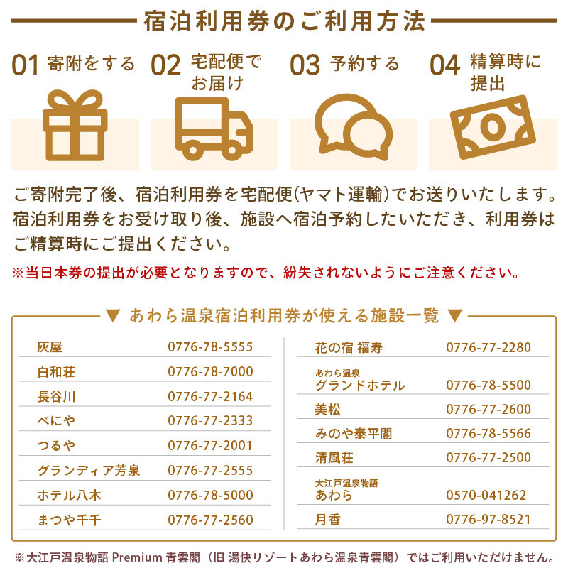 ・本券は、「芦原温泉旅館協同組合加盟の旅館」にてご利用できます。
