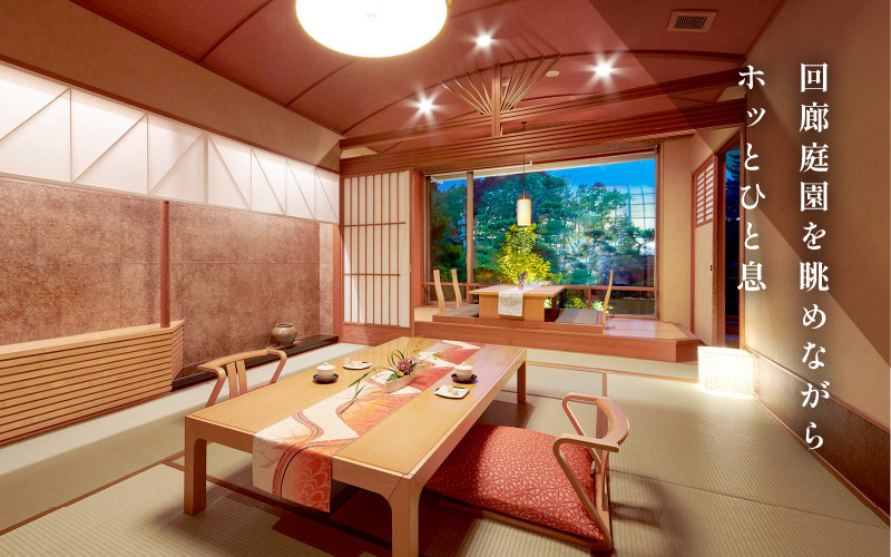 回廊庭園を眺めながら、ホッとひと息
