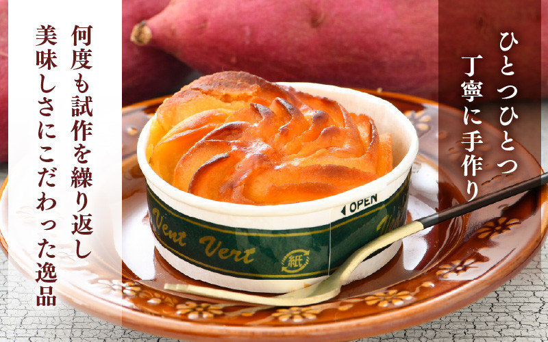ふんだんに使ったバターの豊かな風味、ふわっと口どけが良く細かく刻んだリンゴの酸味と食感がさつまいもの美味しさをよりひきたたせた一品です。