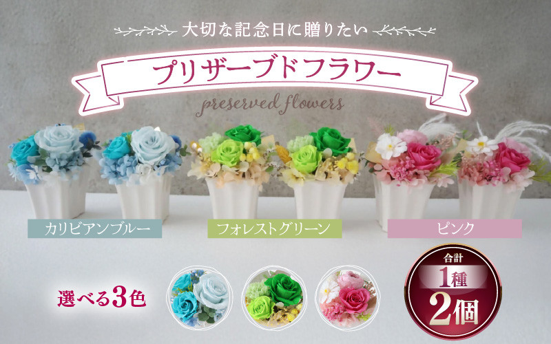 3色からお好きなお色を選べる、プリザーブドフラワー アレンジメント 2個セットです。