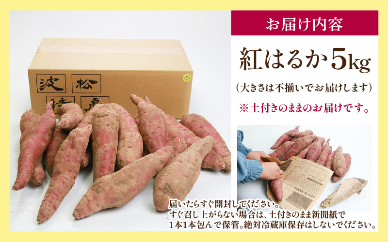 | 容量 | 紅はるか 5kg(大きさは不揃いでお届けします) ※土付きのままのお届けです。 産地:福井県あわら市波松産 保存方法:常温 |