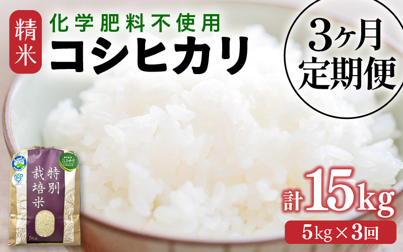 チョイスPayポイントと交換できる品 農家直送!自然に恵まれた環境で有機100%!福井の味をご堪能ください 【令和7年産】定期便 ≪3ヶ月連続お届け≫ 化学肥料不使用 特別栽培米 コシヒカリ 精米 5kg × 3回(合計15kg) / 白米 米 福井県あわら市産 美味しい 特別栽培米 減農薬 安心な米 旨味 甘み もっちり 冷蔵保管米 [aw010-c016]