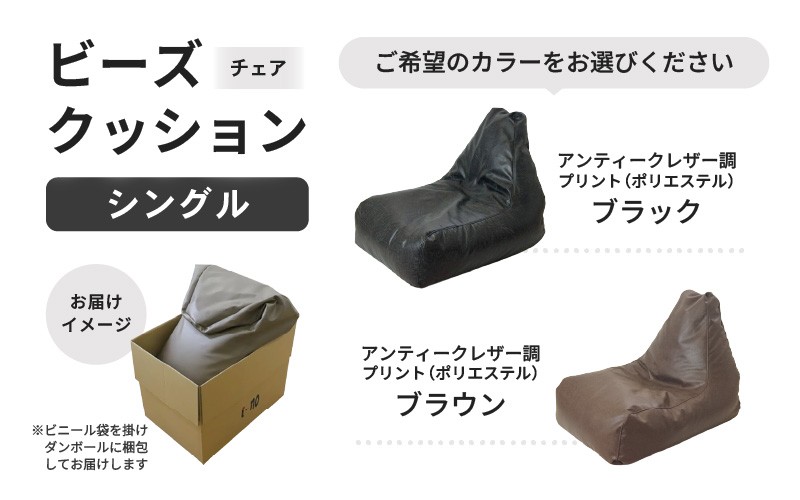 チョイスPayポイントと交換できる品 1人の時間を心地よく。アンティークレザー調 くつろぎビーズクッション 【2色から選べる】ビーズチェア ヴァーサ / ビーズソファ インテリア リラックス 椅子 手作り 国産 <ブラック・ブラウン> [aw055-a010]