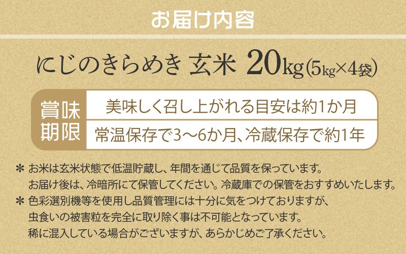 にじのきらめき 玄米 20kg(5kg × 4袋)