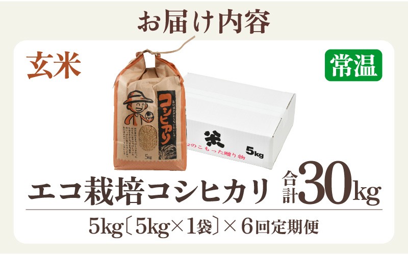 【先行予約】【令和8年産 新米】エコ栽培コシヒカリ 玄米5kg×6…