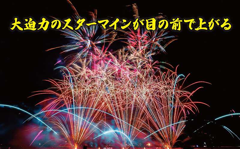 スターマインを中心に約1万4000発の花火が打ち上がり、日野川を舞台にワイドに幅広い花火が宙を舞う。
