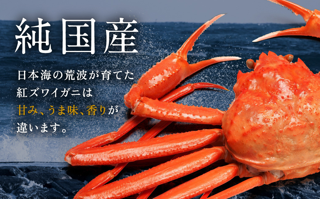 日本海の荒波の中でじっくりと育った「日本海の国産紅ズワイガニ」をご家庭にお届けいたします。
