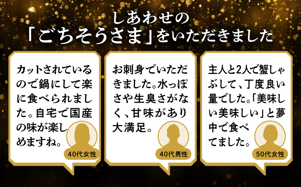 ※国産蟹のため天候や漁獲量に大きく左右されるため、数量限定となります。