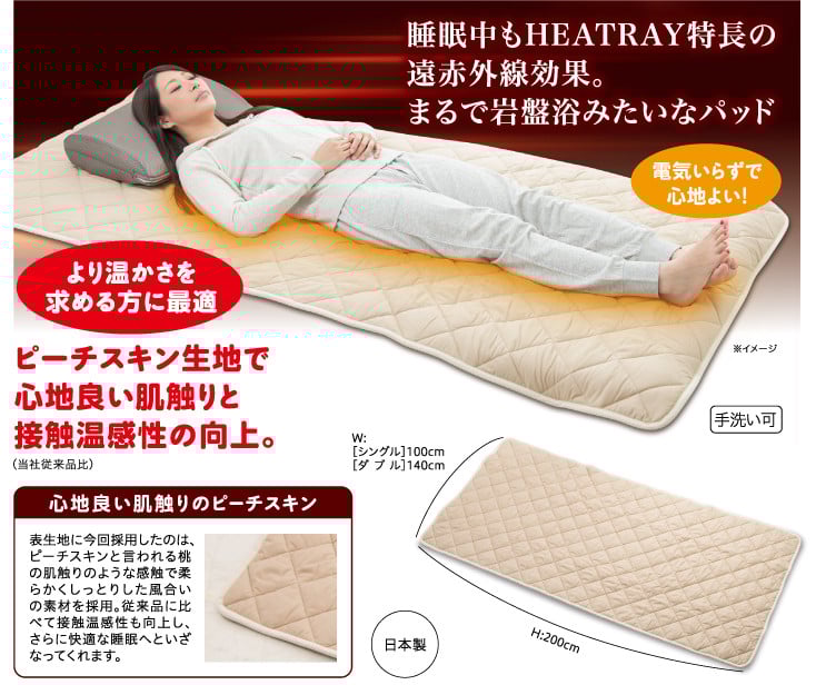 チョイスPayポイントと交換できる品 羽毛を超えた蓄熱性!まるで岩盤浴のような温もり。 HEATRAYプレミアム岩盤浴パッド シングル
