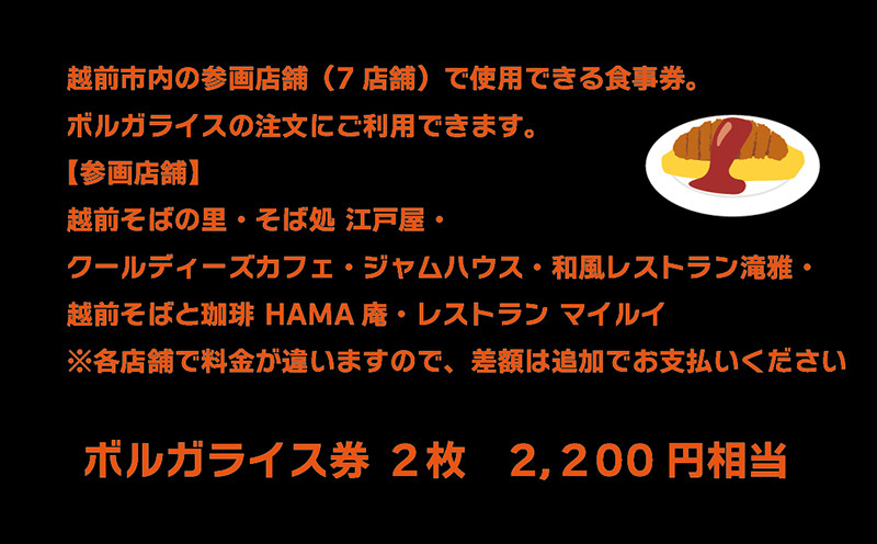 チョイスPayポイントと交換できる品 越前市のソウルフードをぜひご賞味ください 越前市ご当地グルメ ボルガライス券 2枚