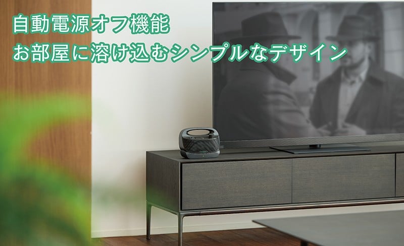 テレビと連動して電源が自動で切れる”自動電源オフ機能“を搭載。テレビから音声が無い、または音声が小さい状態が10分間続くとスピーカーの電源が自動的に切れます*。