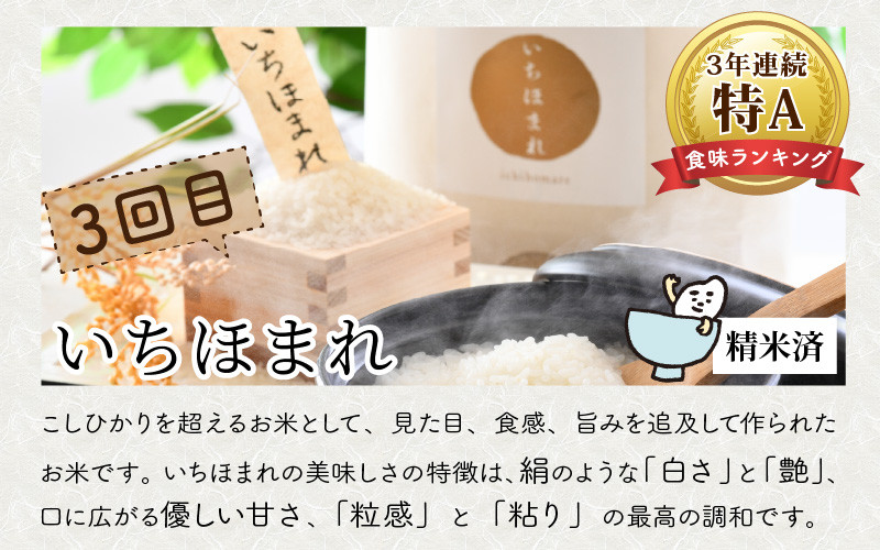 「こしひかり」「あきさかり」「いちほまれ」を月替わりで5kgずつ3か月間お届け!