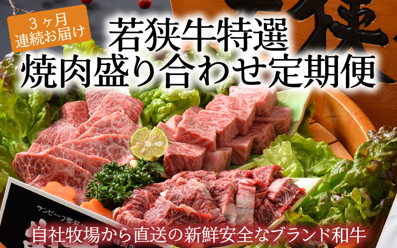 【3ヶ月連続お届け】 若狭牛 特選焼肉盛り合わせ定期便