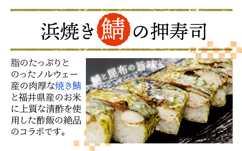 脂ののった肉厚な焼き鯖を昆布で包んだ上品な味わいの押し寿司! ふるさと福井の味自慢 浜焼き鯖の押し寿司の 3本セット [A-8403]