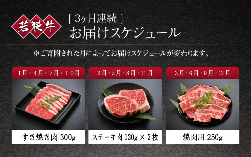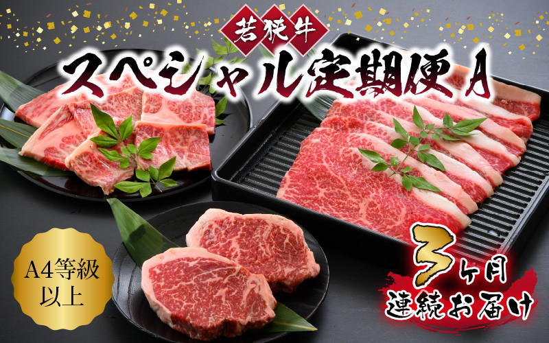 3ヶ月連続お届け!A4等級以上の若狭牛を定期便にてご提供! 【3ヶ月連続お届け】 A4等級以上若狭牛スペシャル定期便 A 【若狭牛 食べ比べ ステーキ すき焼き 焼肉 焼き肉 A4 等級 国産和牛 黒毛和牛 黒毛和種 ブランド牛 和牛 肉 牛 牛肉 坂井市 福井県産 国産 冷凍】 [C-10701]