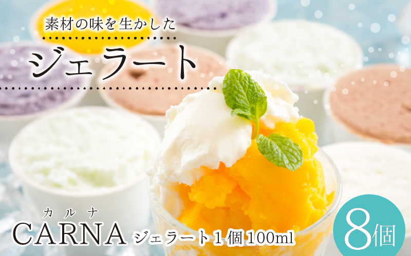 地元で人気のこだわり溢れるジェラート屋さん! 素材の味を生かした カルナの ジェラート 8個セット【アイス ミルクアイス アイスクリーム シャーベット ジェラート 氷菓子 スイーツ お菓子 おかし 詰め合わせ セット 人気 冷凍 ご褒美アイス 暑さ対策】 [A-3021]