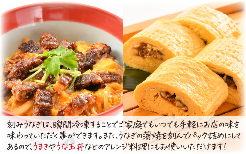 また、うなぎの蒲焼を刻んでパック詰めにしてあるのでうなぎのちらし寿司やうざく酢等アレンジ料理にもお使いいただけます。