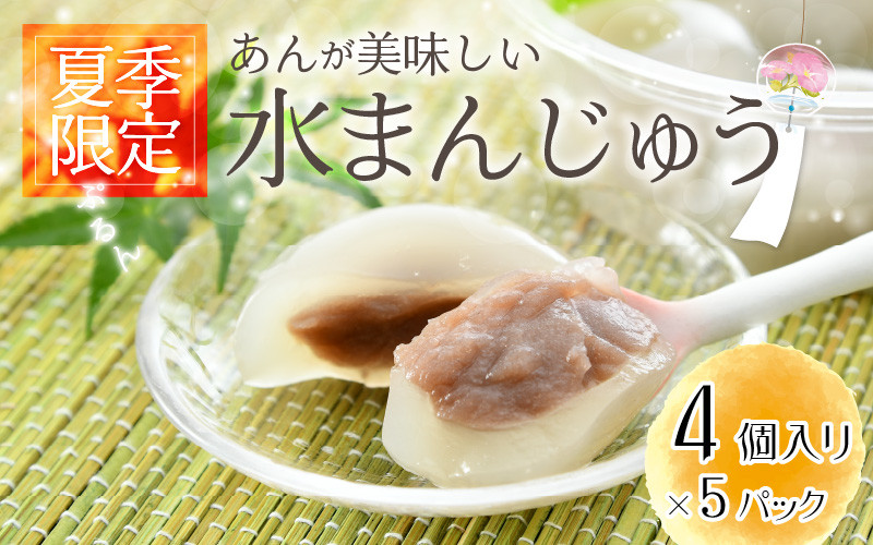 ≪夏季限定≫ 餡の美味しい水まんじゅうです。 夏季限定!あんが美味しい ぷるぷる「水まんじゅう」 4個 × 5パック (合計20個) 【饅頭 スイーツ お菓子 和菓子 冷菓 涼菓 和スイーツ お中元 暑中見舞い 残暑見舞い 贈り物 ギフト 夏ギフト】 [A-4209]