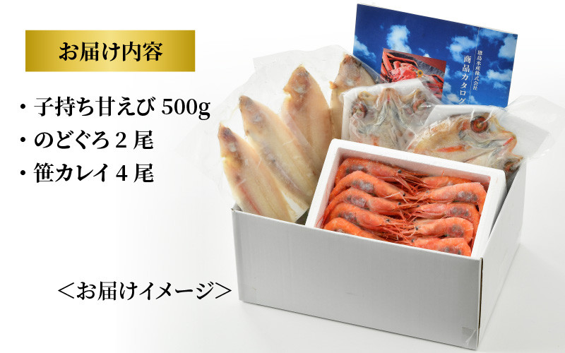 雄島水産厳選の大満足セット! 極上子持ち甘えび 500g・厳選一夜干しのどぐろ2尾・笹カレイ4尾 大満足セット [B-12352]