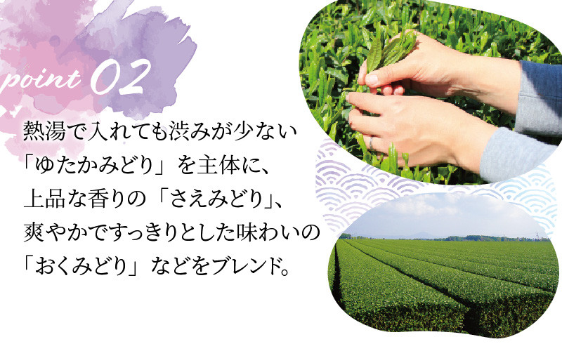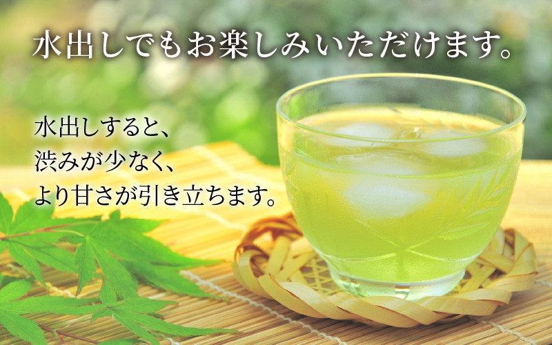 暑い季節には水出しでもお楽しみいただけます。深蒸しなので煎茶の甘味と、濃い味わいの水出し煎茶に仕上がります。