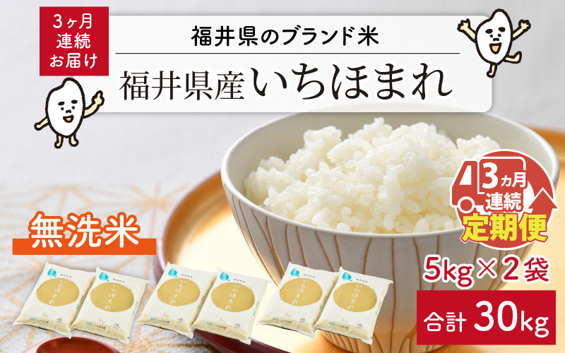 福井県が生んだブランド米を無洗米でお届けします。 【令和7年産・新米】 定期便 ≪3ヶ月連続お届け≫ 福井県のブランド米 いちほまれ 無洗米 10kg × 3回 計30kg 【 無洗米 人気 品種 ブランド米 特A 】 [K-6108]