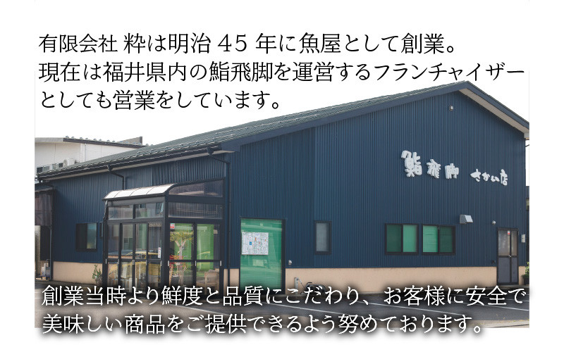 米(福井県産),アカムツ(砂糖、醸造酢、塩、昆布エキス)、すし酢、/ソルビトール、調味料(アミノ酸)、(一部に乳成分を含む)