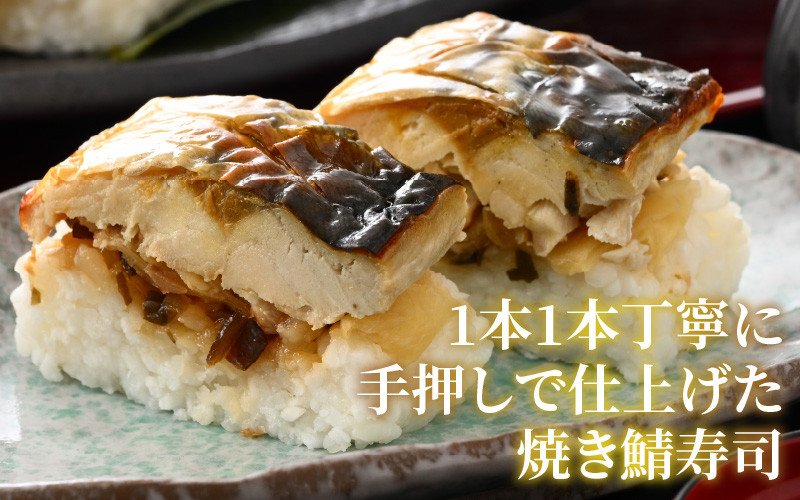 脂の乗ったとろ鯖を香ばしく焼き上げ、福井県産コシヒカリを使用した酢飯を1本1本丁寧に手押しで仕上げた焼きさば寿しです。