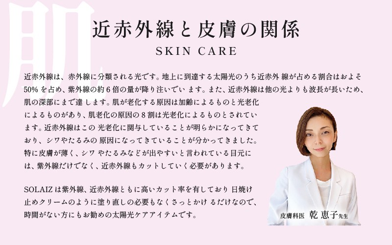 また、眼科医や皮膚科医からの推奨も得ているSOLAIZは、太陽の光を優しい光へと導きます。