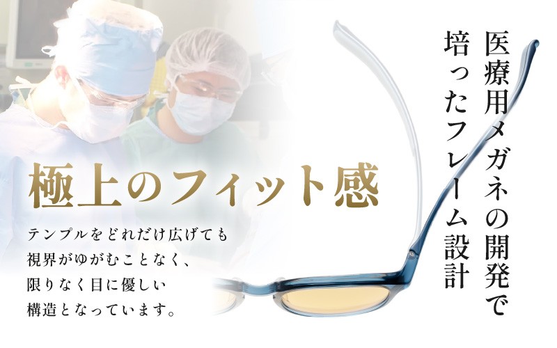 長時間の手術にも耐えうる保護メガネを開発している当社だからこそのノウハウが詰まったストレスフリーなサングラスです。