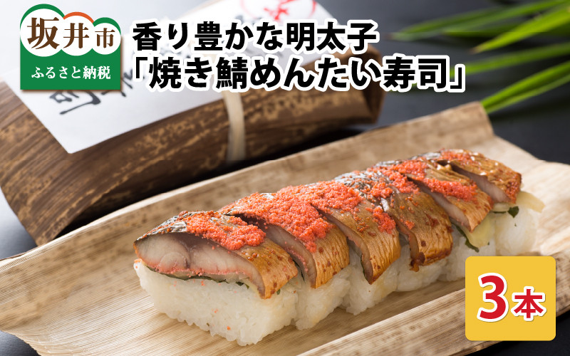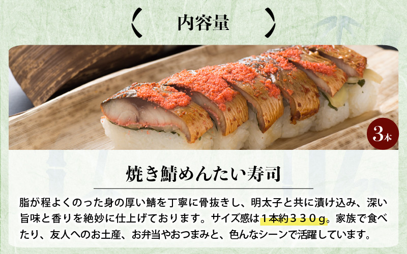 香り豊かな明太子を使用した 「焼き鯖めんたい寿司」 3本 [A-0…