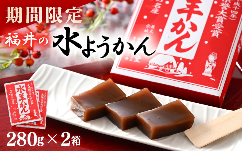 じっくりとこだわった自家製こしあんで仕立てた越前福井の冬の風物詩 【先行予約】【期間限定】 福井の水ようかん 280g×2箱 ~真冬に食べるご当地水ようかん~ 【2025年11月上旬以降順次発送予定】【水羊羹 羊羹 あん 餡子 こし餡 和菓子 和スイーツ お菓子 デザート 冬の味覚 福井県】 [A-12848]