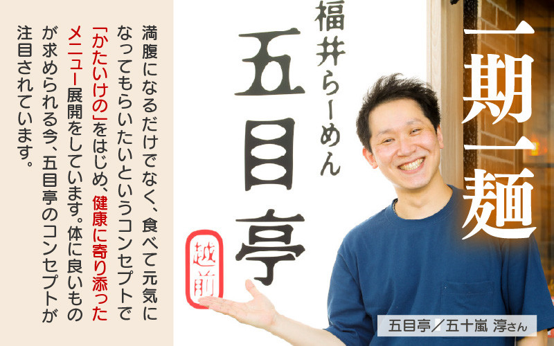 化学調味料や添加物を使用せず、福井の食材をふんだんに使った五目亭の地産地消ラーメン「かたいけの」。