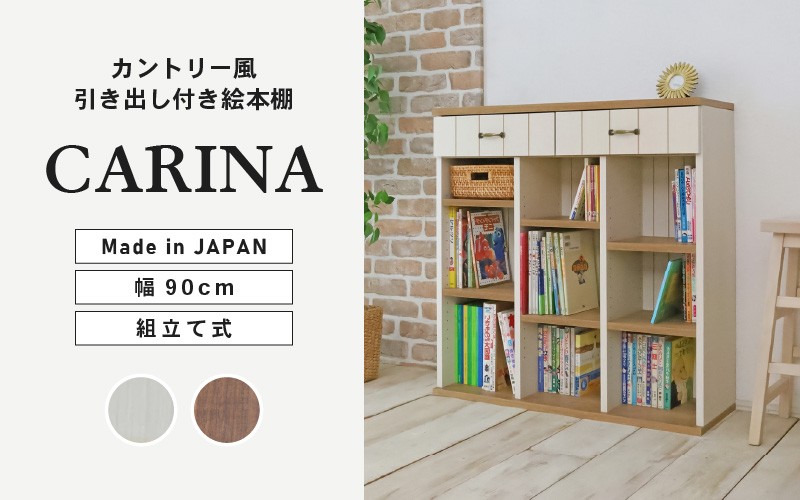 幅90cm カントリー風引出付き絵本棚 CR-9090H