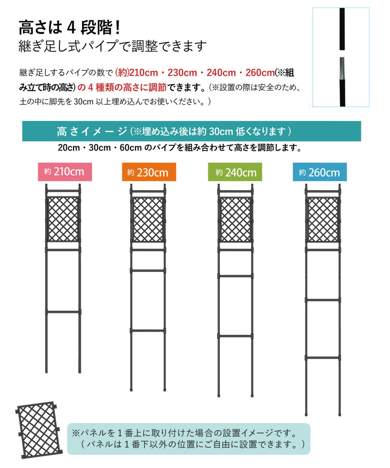 高さ:210cm・230cm・240cm・260cm(※この高さは組み立て時のサイズです。