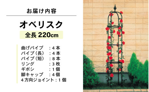 シンプルなデザインで工具を使わず組み立てることができます daim オベリスク ブラック 220cm 【バラ クレマチス つる性植物 ローズオベリスク ガーデンオベリスク オベリスク つるバラ つる 花 薔薇 ばら ガーデニング トレリス 菜園 組み立て 支柱 園芸】 [A-18405]