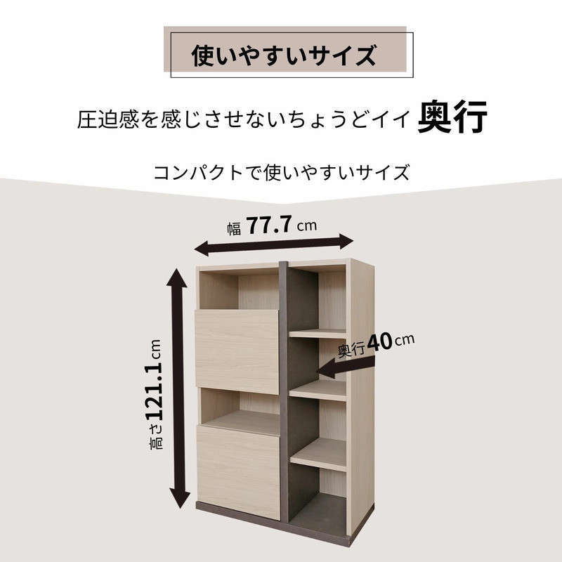 | 容量 | ■幅80cm 仕切れるキャビネット PABO-1280OT <カラー> ホワイト クルミ (グレージュ) <サイズ> 外寸:幅77.7 奥行40 高さ121.1(cm) <梱包サイズ> 長さ124.5 幅42 厚み19(cm) 28kg ※組立式家具(ノックダウン家具) |