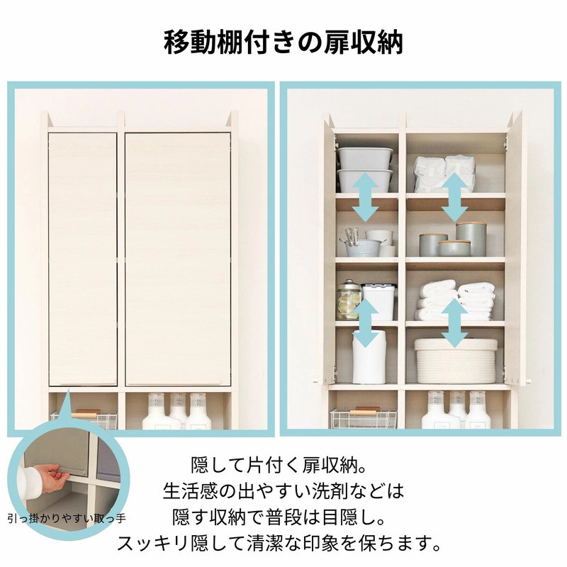 多種多様な収納と機能性を兼ね揃えたラック 幅64cm 多種多様な収納のランドリーラック SE-1865OT 【選べるカラー:ホワイト木目 / ライトグレー×グレー】 日本製 ≪寄付者様組み立て品≫ 【ランドリーラック ラック 棚 洗面所収納 扉付き 洗面所 収納 脱衣所 薄型 スリム ランドリー サニタリー 収納 木製 新生活 国産】 [K-18801]