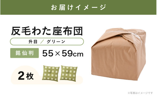 反毛わたを使用した高密度で弾力のある座布団をお届け! 床の硬さを感じにくい「反毛わた」座布団 側地綿100%(銘仙判55cm×59cm)2枚組【升目】【グリーン】 [A-20405_16]