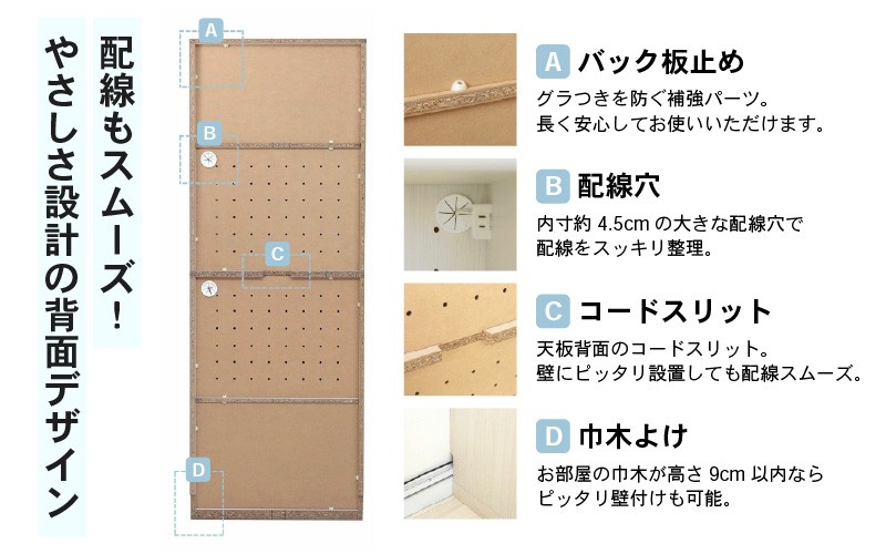 ・組立家具を含む木材加工品は、組み立て方や設置環境によってサイズに誤差が生じる場合がございます。
