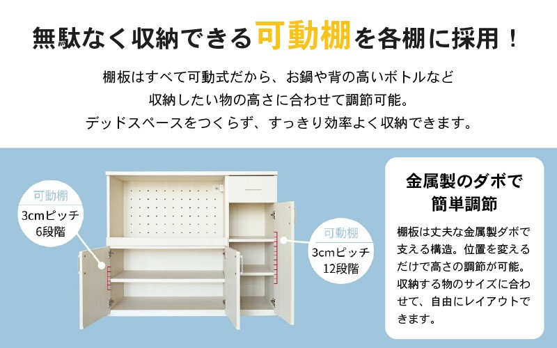 幅105cm 便利なスライド棚付きレンジ台 NE-9010R ホワイト木目 …