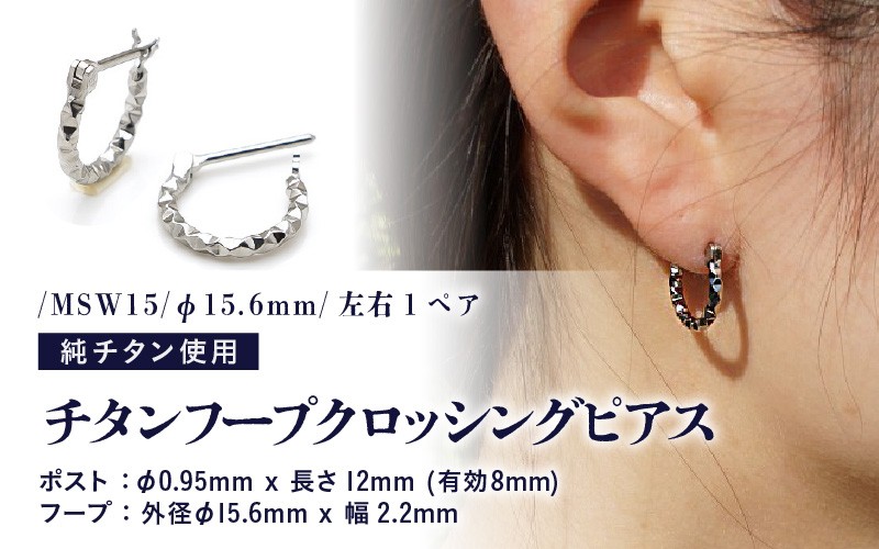金属アレルギーを起こしにくいお肌に優しいチタンフープクロッシングピス チタンフープクロッシングピアス/MSW15/φ15.6mm チタン製 日本製 【ピアス オールチタン 純チタン アクセサリー おしゃれ 軽量】 [D-20303]