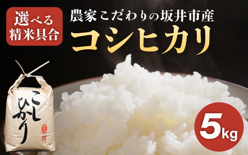 農家が丹精込めて育てた福井県坂井市産コシヒカリ 【令和7年産】農家こだわりの坂井市産 コシヒカリ 5kg 【選べる精米具合:白米 / 玄米】 【米 コメ お米 5キロ こしひかり ふるさと納税米 ブランド米 国産】 [B-10202]