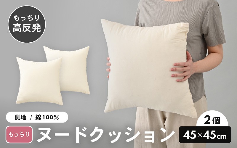 コシのある「もっちり」感。沈み込みすぎない快適クッション 高弾力!もっちり固め ヌードクッション 45cm角 ブレンド綿(側キナリ)2個 [A-20430]